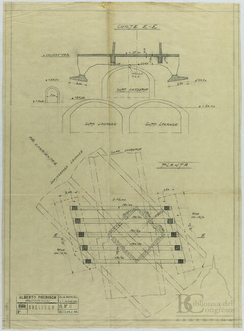 “Obelisco. Corte E-E. Planta. Plano Nº2”